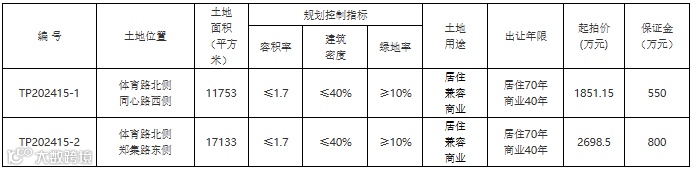 2、挂牌出让:截止于2024年11月4日17时,本公告出让地块没有申请人竞买或取得竞买资格的申请人不足三人的,出让方式将由公开拍卖转为挂牌出让。