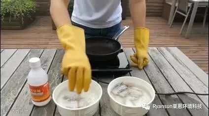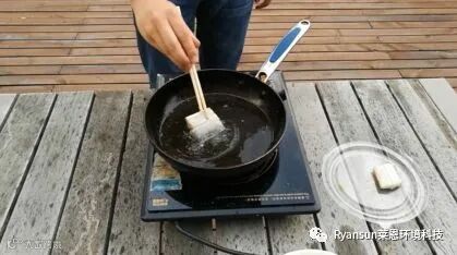 第三步,分别将正常带鱼和浸泡了福尔马林的带鱼进行油炸。