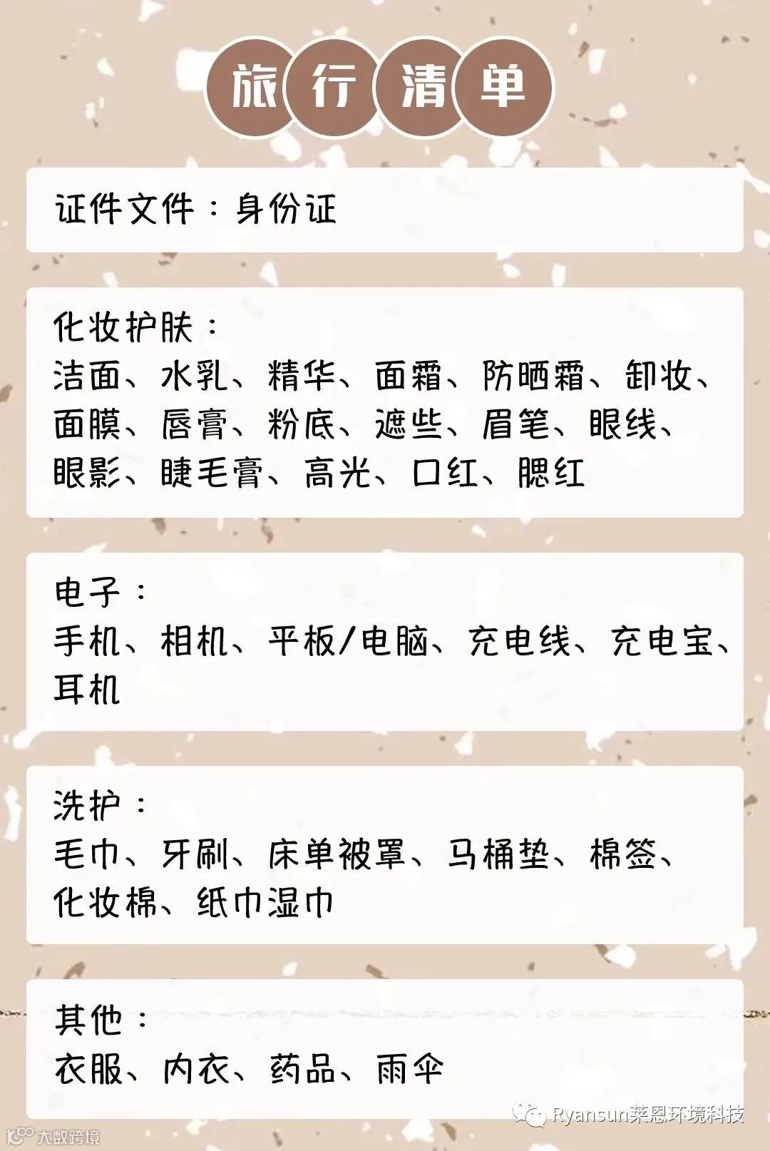 每次出行都想不起要带什么,等到了目的地才发现各种遗漏?不用担心,莱恩帮你准备好啦~