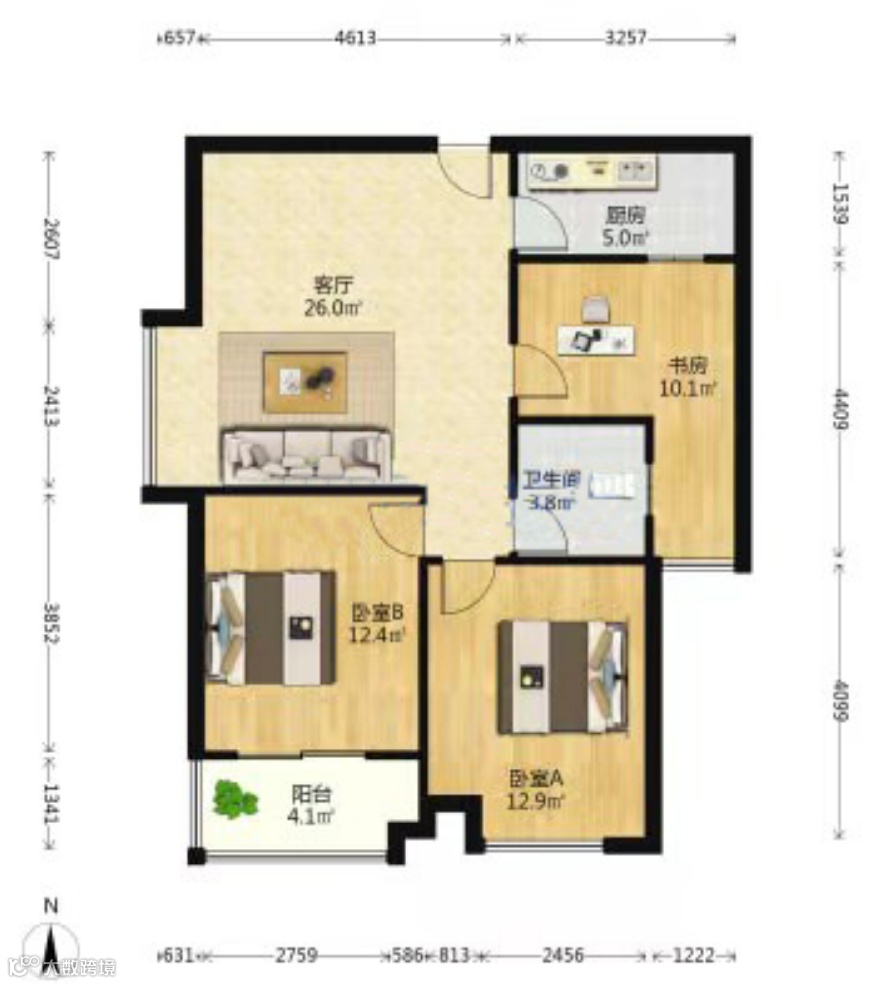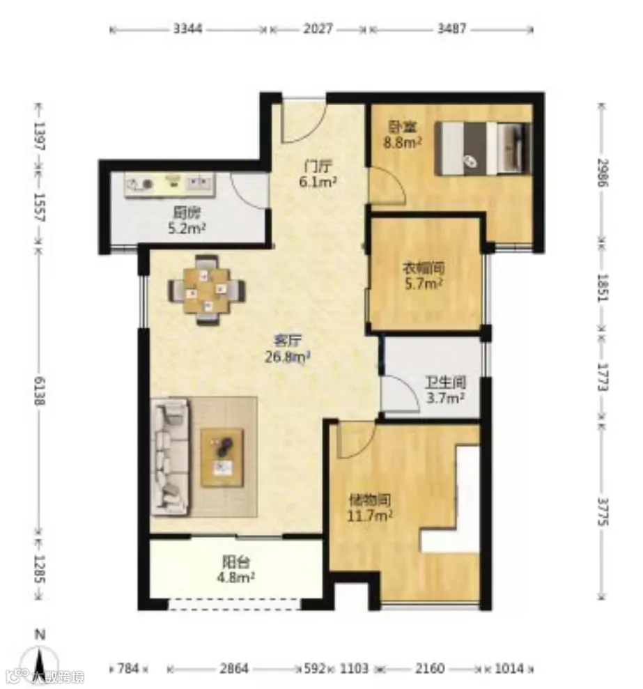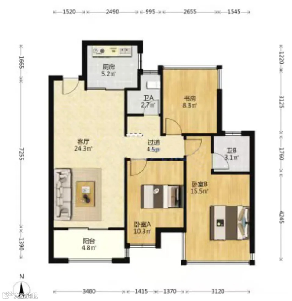 望江台璟宸,1套小高层,3室2厅,建筑面积100㎡的户型,当前挂牌价是288万,单价2.88万/㎡左右,涨价91万。