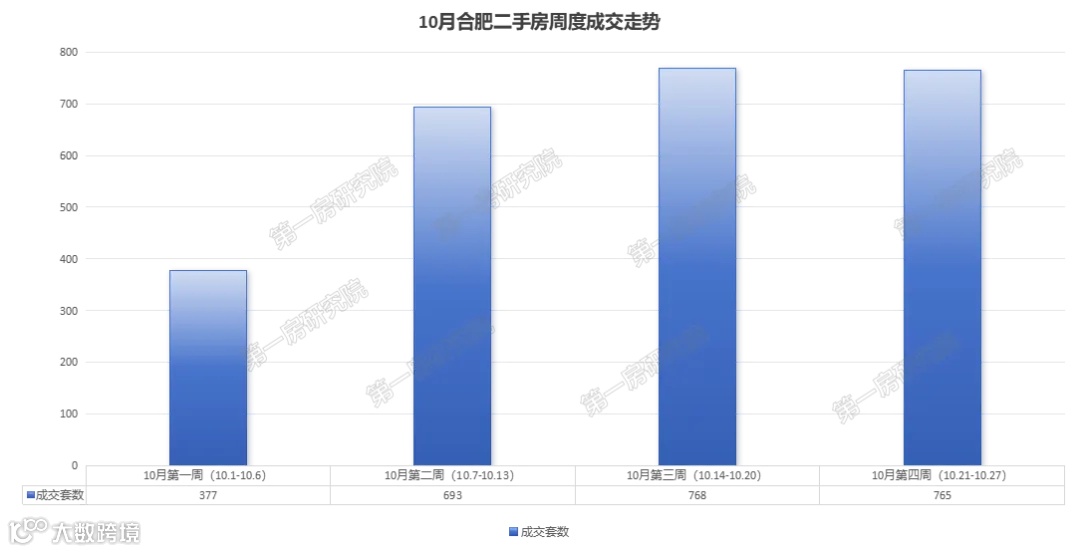 从周度数据来看,10月份二手房成交主要集中在10月第二周以后,每周基本上成交量都在700多套。
