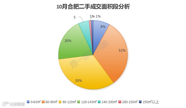 再来看看10月的分段成交情况。从10月成交面积段来看,90-120㎡和60-90㎡的户型成交占比最高,说明当下的二手房购房者主要是以纯刚需和刚改为主。