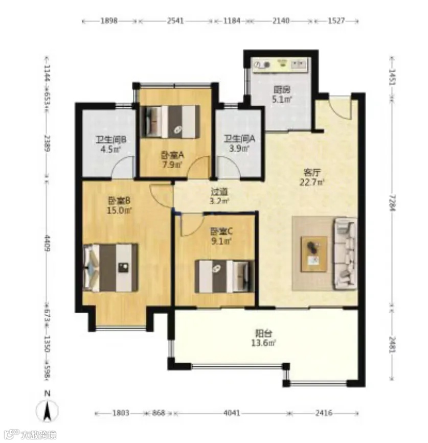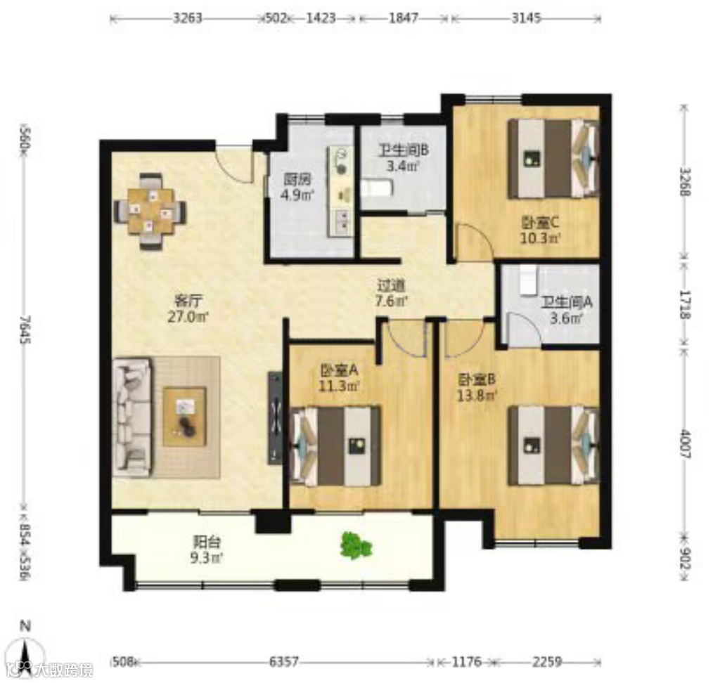 万科时代之光,1套顶复,3室2厅,建筑面积144.97㎡的户型,当前挂牌价是1100万,单价7.59万/㎡左右,涨价100万。