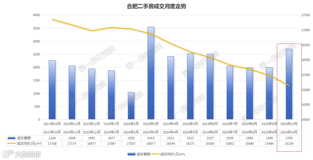 先来看看月度走势,从二手房成交来看,10月份截止到10月28日,二手房成交2700套,创近7个月成交量新高,目前已经比9月多卖700多套,也超过了去年同期水平。但成交价是近1年新低,比去年10月份降了超2000元/㎡,二手房市场以价换量的行情还在延续。