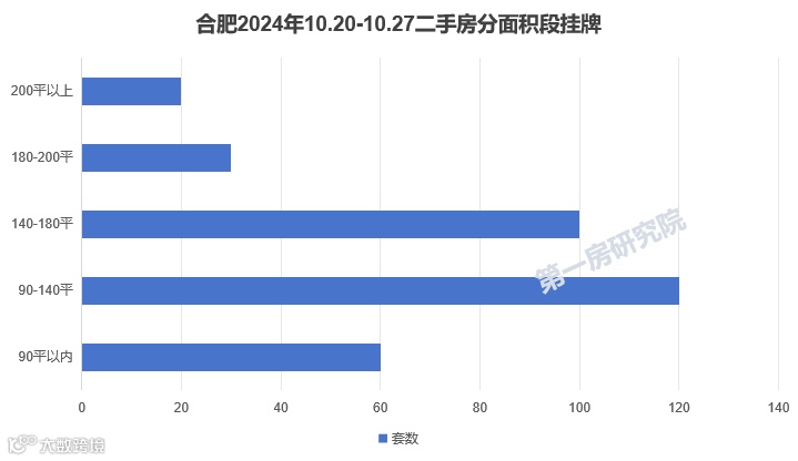 分面积段来看,90-140m²以下的挂牌量最多,整体合肥二手房市场刚需面积段挂牌面积较多。