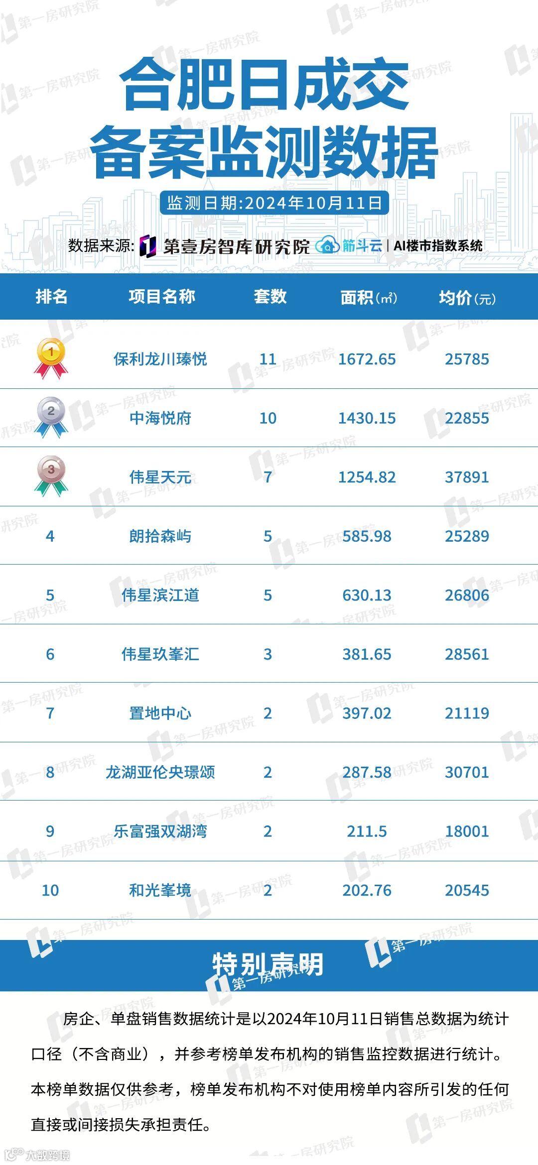 10月10日合肥市区备案住宅类商品房69套,备案均价26528元/㎡