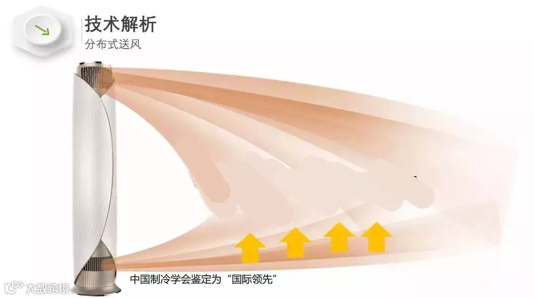 柜机采用了获得”国际领先“的分布式送风技术,多翼离心风机高效布局,双风口风量精准配比。实现温场均衡的舒适体验。