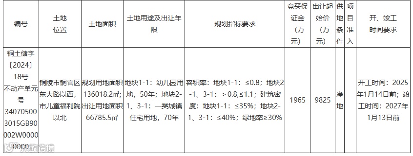 挂牌地点:本次国有建设用地使用权出让通过铜陵市国有建设用地使用权网上交易系统(http://www.tltdjy.cn)发布。