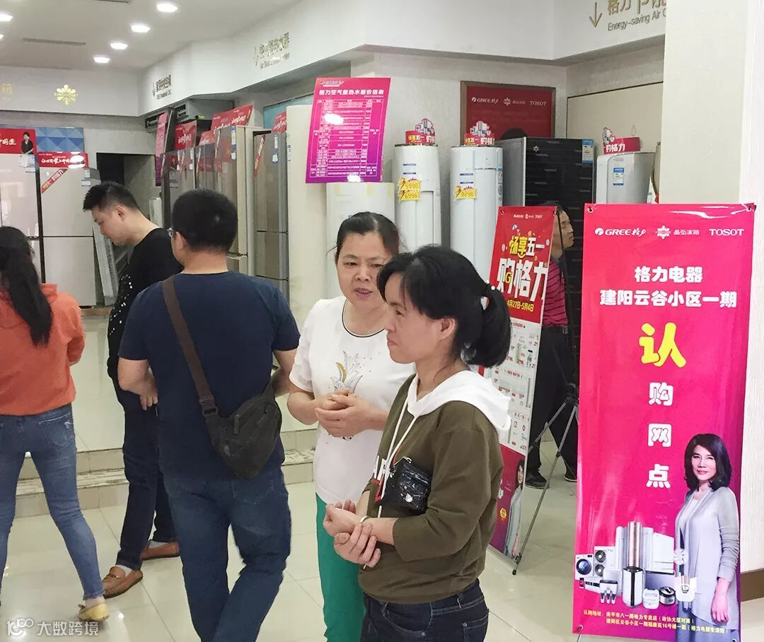 五一活动期间,八一路专卖店特别针对近期建阳云谷小区项目部分交房推出“建阳云谷小区一期”专场认购。为方便客户详细了解格力产品,店内放置了专场认购手册,给予云谷小区项目的客户参考选购,同时对用户的疑问进行详细解答。由于此前对小区项目做了相应的宣传推广,众多该项目小区客户在五一活动期间到店咨询选购。