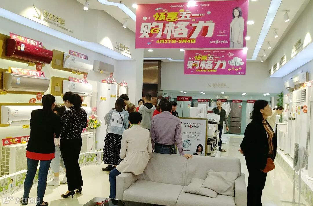 福鼎新时代商厦旗舰店在五一活动期间增加抽红包互动环节,每购买一套空调抽取红包一个,红包内容包括水具、空调被、电水壶、落地扇和现金红包等,购买指定机型还有额外赠送生活电器,不但增加了活动氛围,还有效提升成交率。