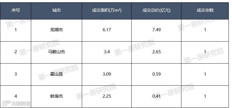 成交方面,有4个市县成交,成交宗数4宗,成交总价11.14亿元。