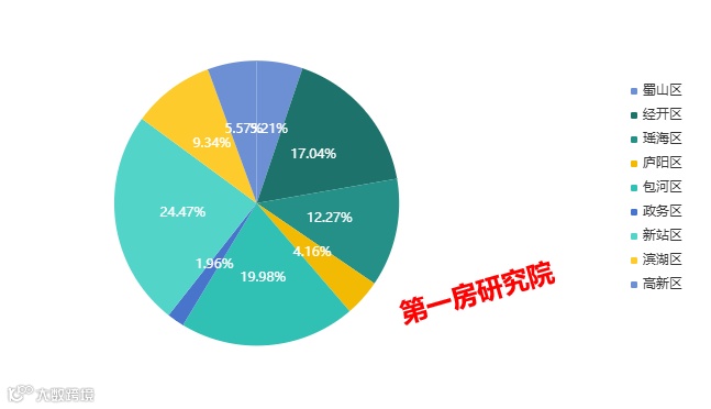 分区域来看,新站区成交面积占比24.47%,九区排名第一。包河区成交面积占比19.98%,九区排名第二。经开区成交面积占比17.04%,九区排名第三。