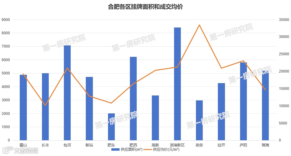 分区县来看,滨湖区挂牌面积最高,政务区的挂牌均价最高。