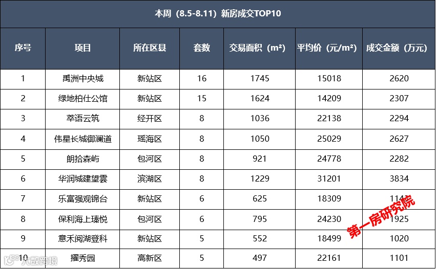 本周(8.5-8.11)土地、新房、二手房数据出炉,一起来看下。