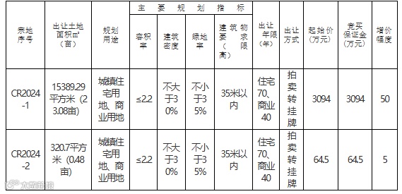 (一)本次出让的CR2024-1号、CR2024-2号宗地须联合报名、统一报价、统一竞得,不接受单宗地报名竞买。申请人可单独申请竞买,也可以联合报名竞买。