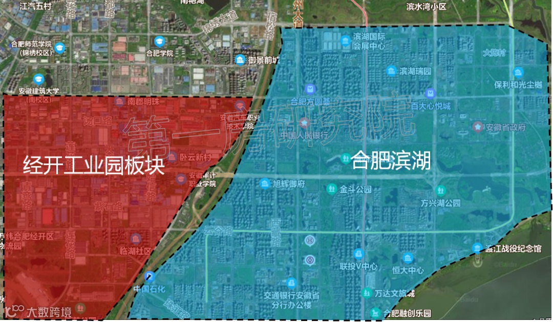 经开工业园板块,主要以工业产业为主,与一级城市中心滨湖,仅一路之隔,有着“泛滨湖之称”。经开工业园板块,可以共享部分滨湖区配套,但自身配套不足,厂区相对聚集,整体环境较差。从新房价格上来看,经开工业园板块新房价格在2.2-2.3万/㎡,滨湖的新房价格在3万/㎡,一路之隔,单方差价近7000元。所以经开工业园板块在一定程度上能承接滨湖的外溢客户。