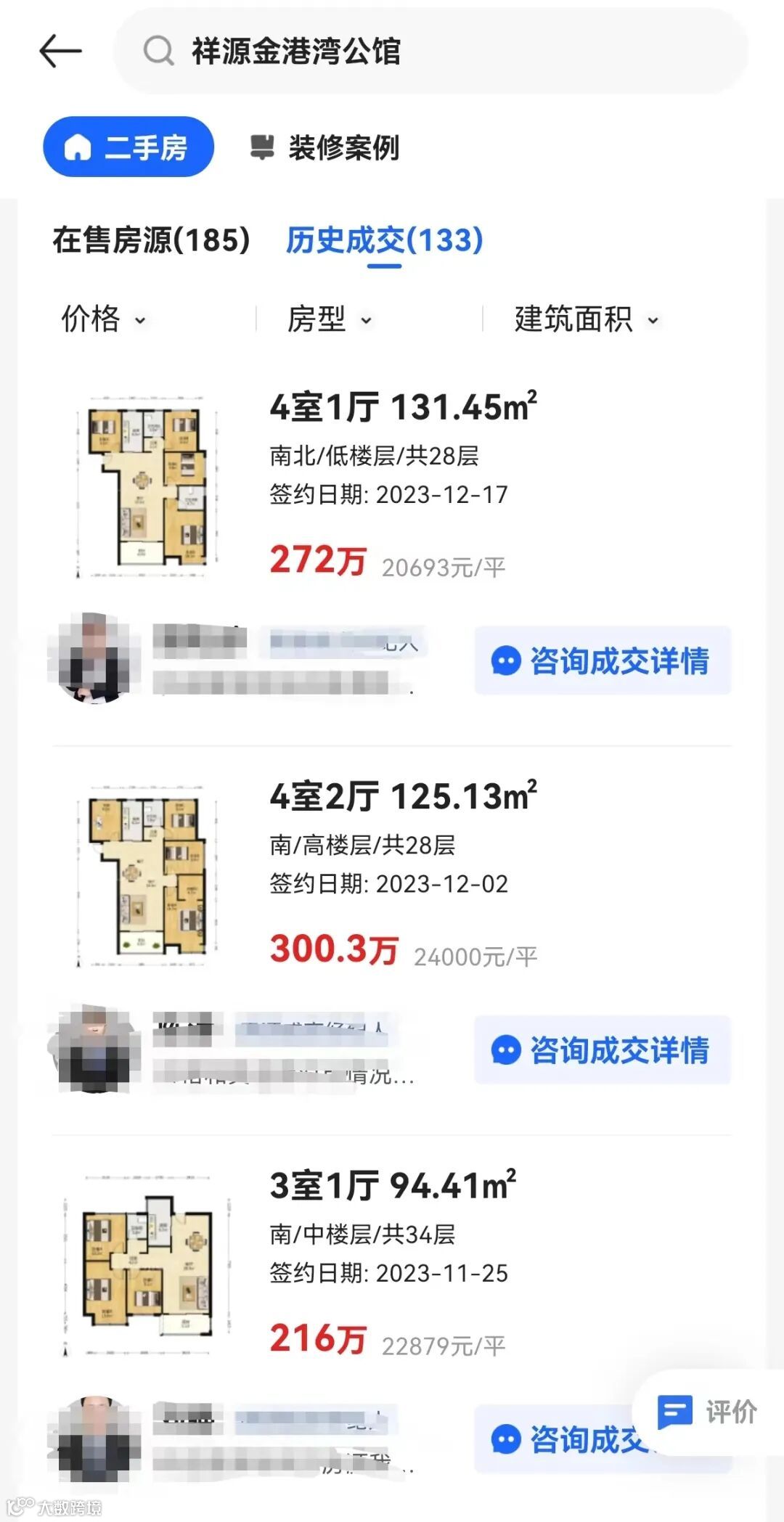 ,跌声一片的二手房降价大潮下,龙湖光年成交价为2.8-2.9万/㎡。但旁边的蓝光雍景半岛、祥源金港湾成交价已经跌到2.1-2.4万/㎡,尤其是祥源金港湾最新挂牌价低至1.9万/㎡。