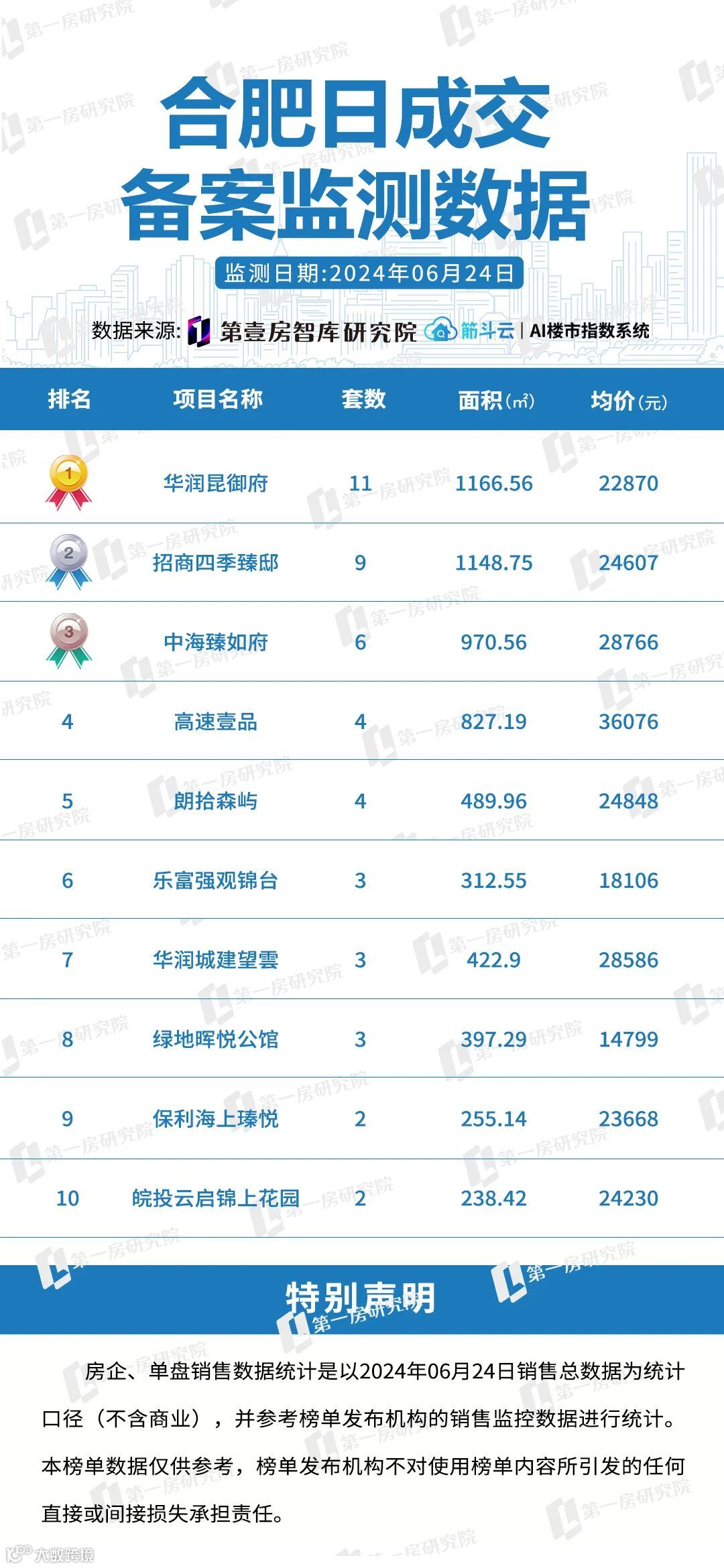 第一名,华润昆御府备案11套,备案均价22870元/㎡;