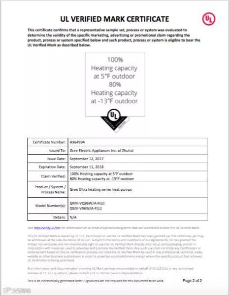 格力Ultra Heat系列超低温制热多联机组,采用格力自主研发的三缸双级变容压缩机,可实现-25℃制热量达 100%, -35℃依然稳定运行,该项技术在2016年被鉴定为“全球首创 国际领先”。2017年,格力超低温制热多联机获得 UL 颁发的全球首张超低温制热证明。