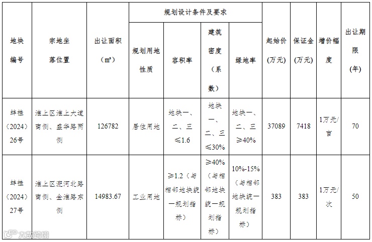 具体公开出让方式由蚌埠市自然资源和规划局于2024年8月27日17:30前告知取得竞买资格的申请人。