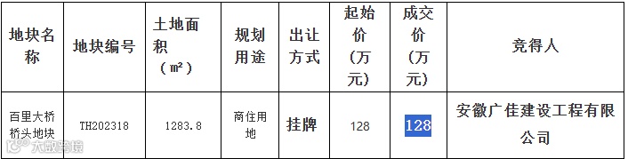 安徽广佳建设工程拿下太湖1宗涉宅用地,成交价128万元