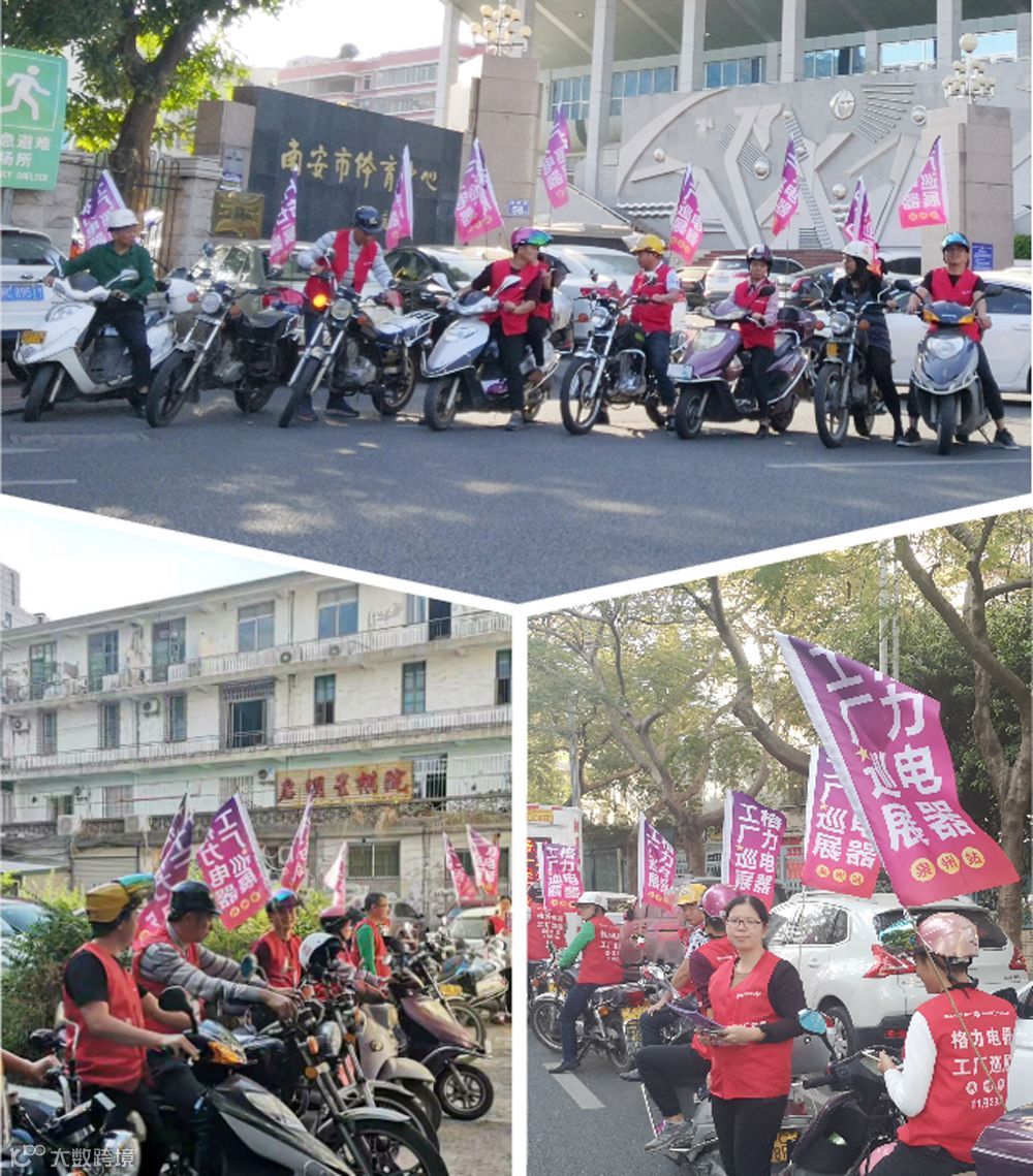 11月21日,这已经是泉州巡展活动认筹的最后2天了,在接近尾声之际,泉州格力人一点也没有松懈。这天,南安友谊电器总经理柯总亲自带领全员骑着摩托车游街宣传,穿梭在南安市的大街小巷,为令人沸腾的泉州巡展再燃一把火。