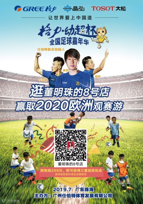 本届“幼超杯”足球嘉年华活动将在7月17日于珠海体育中心举行。同时,为增加活动的趣味性,赛事策划了“逛董明珠的8号店,赢取2020欧洲观赛游”抽奖活动。从即日起到7月17日,在董明珠的8号店消费满299元,即可参与抽奖,三重抽奖机会最高可获得“欧洲观赛游”大奖。