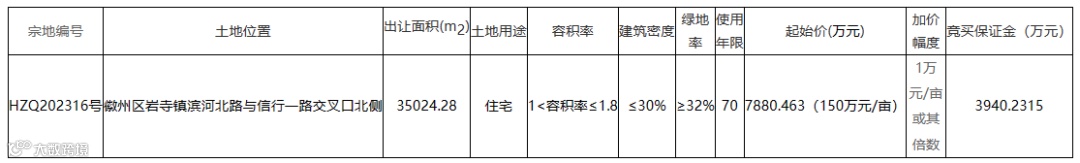 二、竞买人资格及条件:1、HZQ202316号地块中华人民共和国境内外的法人、自然人和其他组织(除法律、法规另有规定外)均可申请参加,申请人可以单独申请,也可以联合申请;2、HZQ202316号项目房屋达到交房条件后,黄山市自然资源和规划局徽州分局可提供“交房即办证”