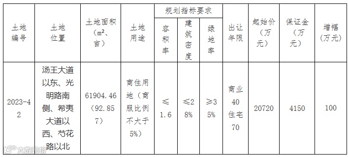 亳州暂定12月14日拍卖1宗涉宅用地,面积92.857亩