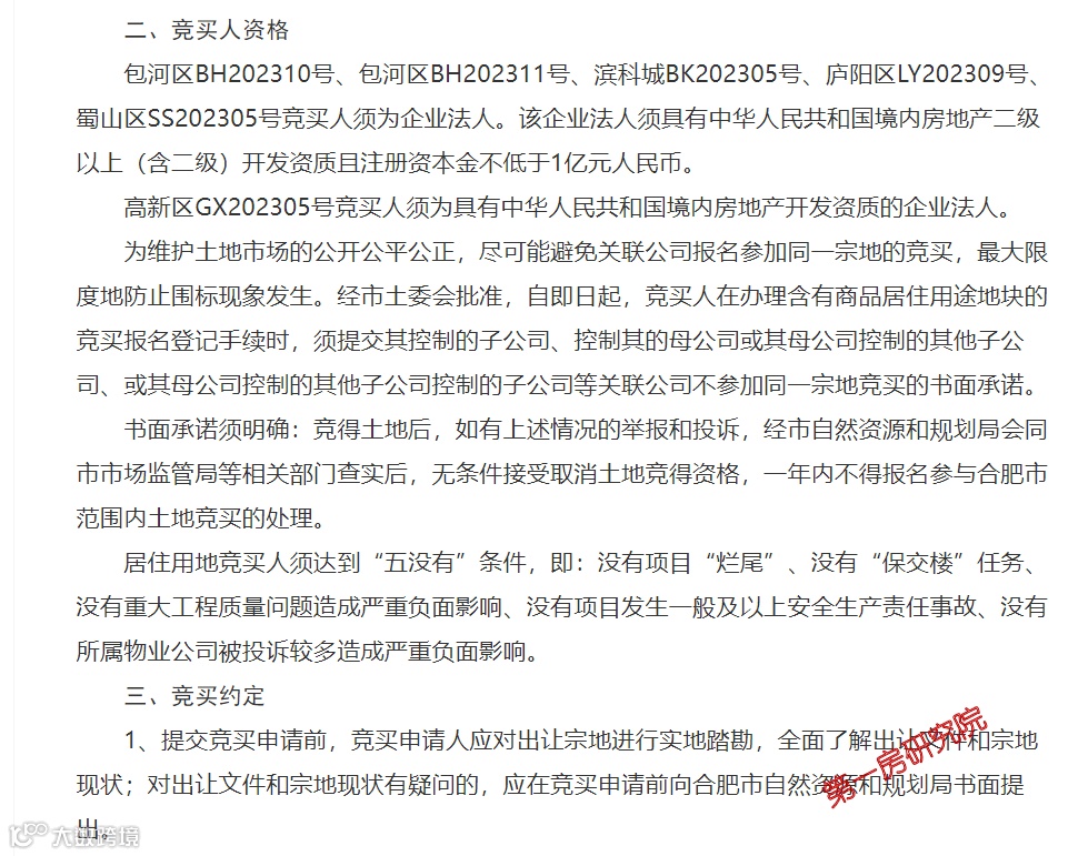 问题造成严重负面影响、没有项目发生一般及以上安全生产责任事故、没有所属物业公司被投诉较多造成严重负面影响。这是对开发商的综合能力和社会责任的一次重要考察。这一规定将有助于筛选出有实力和信誉的开发商,提升土地拍卖的透明度和公正性。