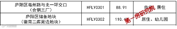 路与北一环交口,原合钢三厂的地块,真正的一环内的地块,旁边就是庐阳政府大楼、祥源广场等。另外1宗地块位于庐阳北部新中心,双地铁口。