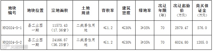 备注:体规划指标按怀宁经开区管委会出具的JGT2024003、JGT2024004号规划条件执行;地块起始价不含契税、印花税;地块准确面积以测绘部门提供的宗地图为准;地块其他出让信息以出让文件为准。