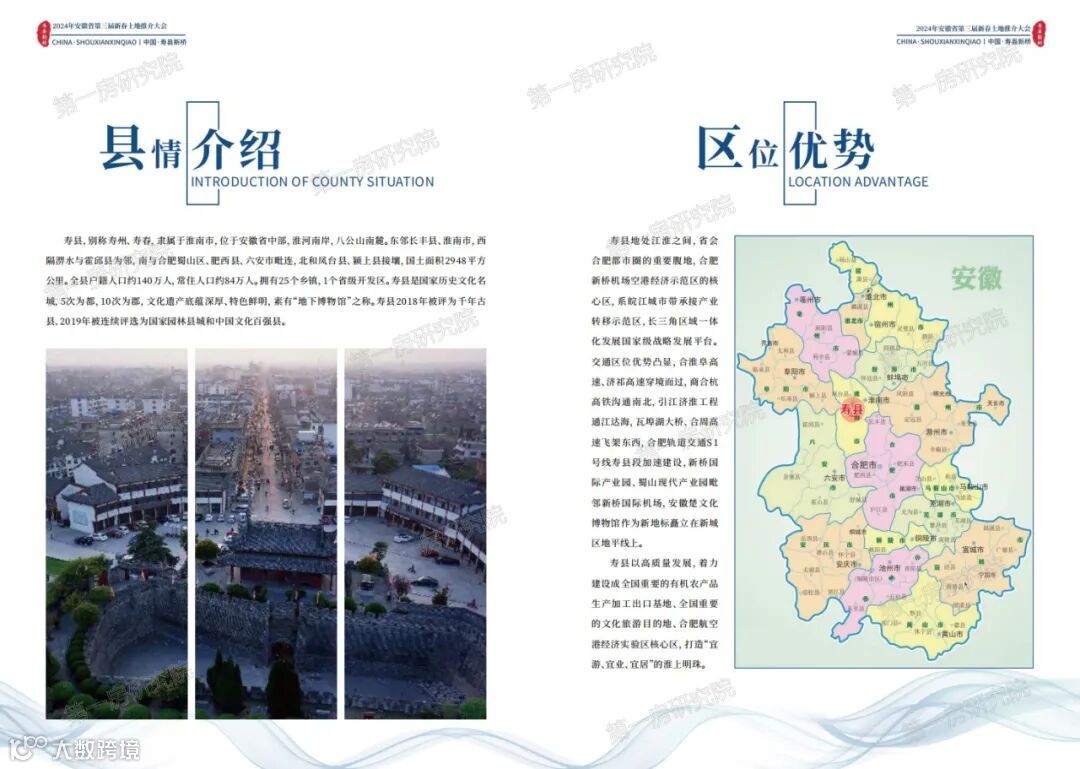 寿县地处江淮之间,省会合肥都市圈的重要腹地,合肥新桥机场空港经济示范区的核心区,系皖江城市带承接产业转移示范区,长三角区域一体化发展国家级战略发展平台。交通区位优势凸显,合淮阜高速、济祁高速穿境而过,商合杭高铁沟通南北,引江济淮工程通江达海,瓦埠湖大桥、合周高速飞架东西,合肥轨道交通S1号线寿县段加速建设,新桥国际产业园、蜀山现代产业园毗邻新桥国际机场,安徽楚文化博物馆作为新地标矗立在新城区地平线上。寿县以高质量发展,着力建设成全国重要的有机农产品生产加工出口基地、全国重要的文化旅游目的地、合肥航空港经济实验区核心区,打造“宜游、宜业、宜居”的淮上明珠。