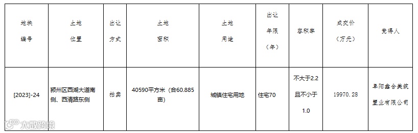 阜阳鑫合美筑置业拿下阜阳1宗住宅用地,总成交价19970.28万元
