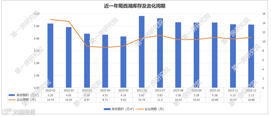 近一年蜀西湖板块库存整体稳定,但由于板块内新房项目较少,月均去化量低,导致整体去化周期高,而实际上蜀西湖去化周期更短。