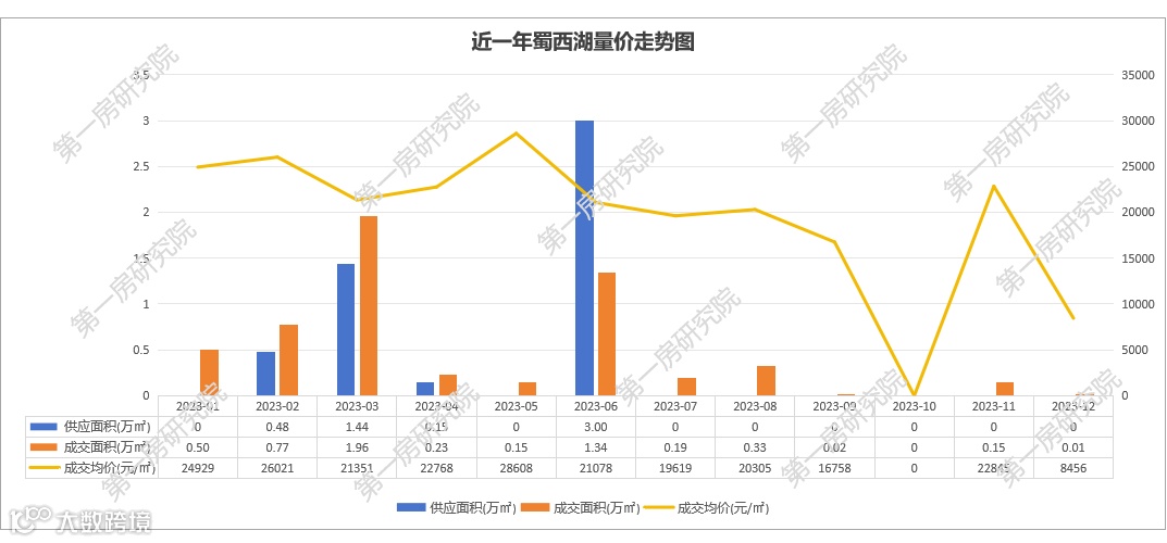 从近一年蜀西湖板块挂牌量来看,相对较为稳定,没有出现挂牌量激增激减的情况,整体挂牌价格有所下降,成交价也波动下跌。