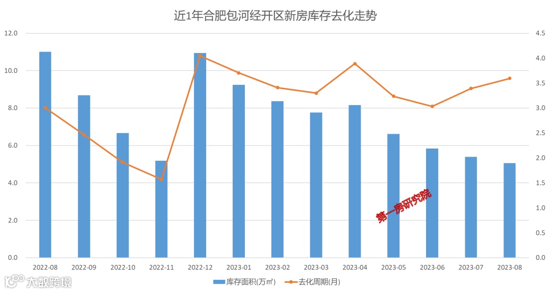 截止到2023年8月,包河经开区新房库存为5.1万㎡,去化周期为3.6个月。