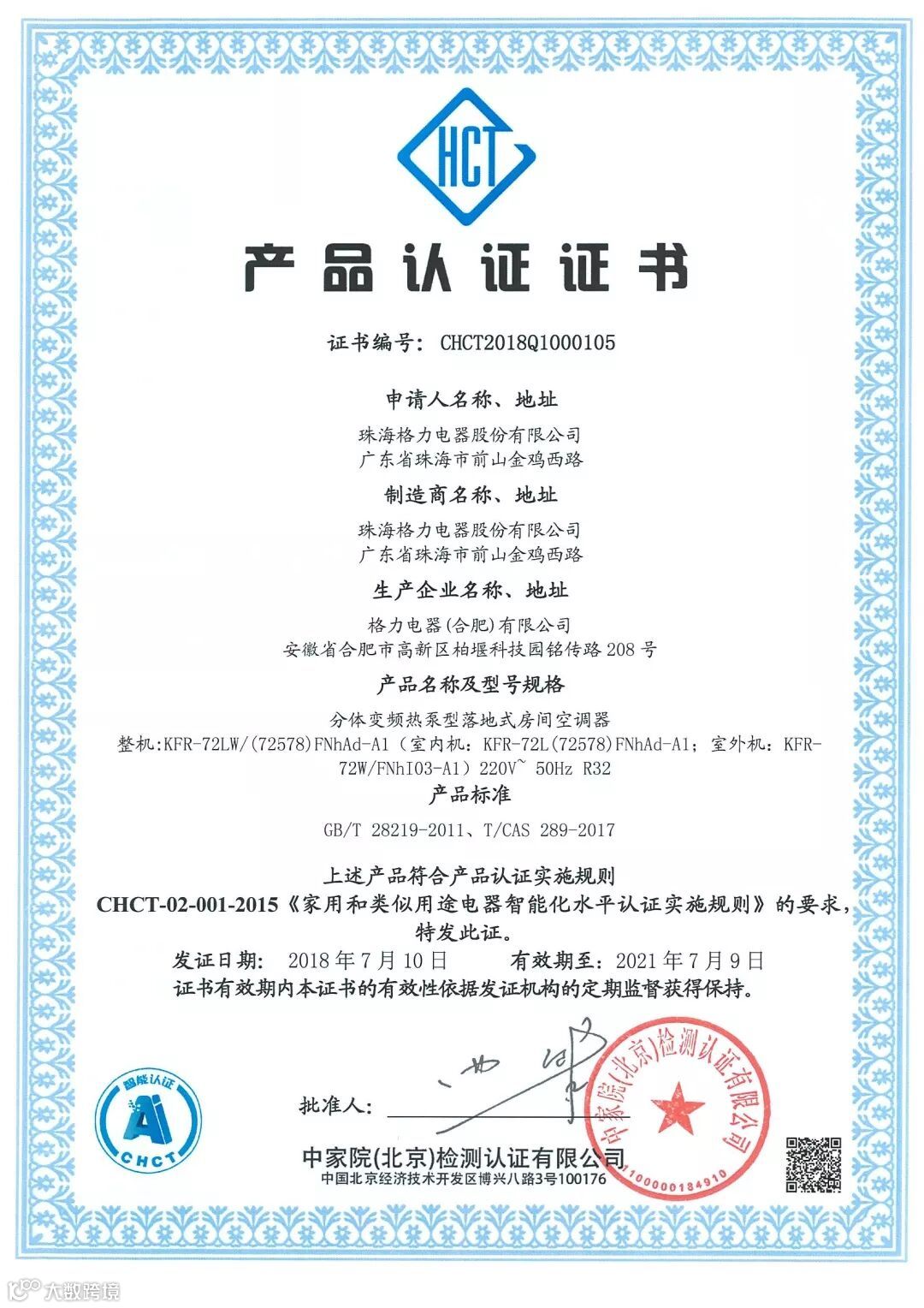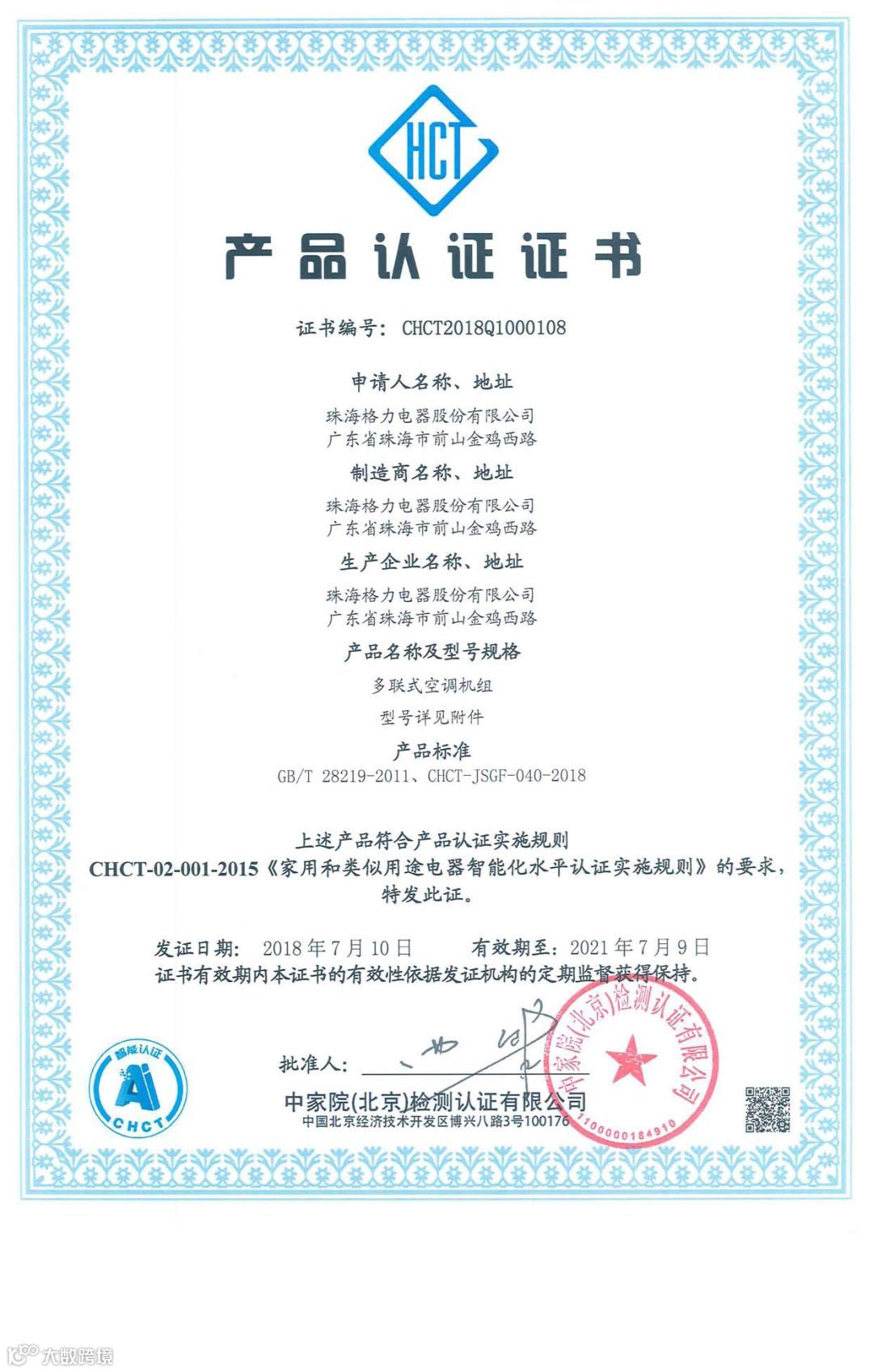 经检测,格力•金贝系列柜机和格力商用多联机通过“安全、可靠、舒适、易用、节能”五个方面的检测,对增强产品功能、提升产品性能、改善用户体验具有一定价值的智能功能进行评价,满足CHCT-02-001-2015《家用和类似用途电器智能化水平认为实施规则》的要求。