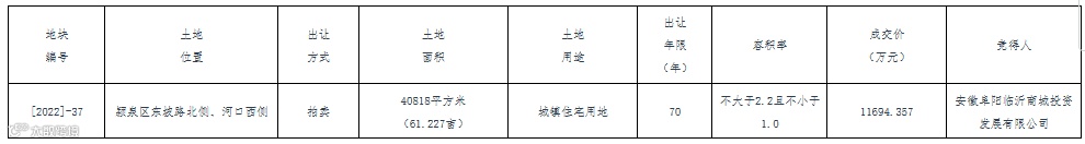 安徽阜阳临沂商城投资发展有限公司拿下阜阳1宗住宅用地,成交价1.17亿元