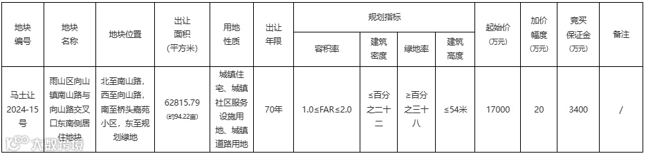 1.马土让2024-15号地块如本次公开出让方式转为挂牌,报名申请截止时间延长至2024年5月17日16时,交纳竞买保证金截止时间相应延长至2024年5月17日16时。挂牌时间为2024年5月9日10时至2024年5月21日16时,地点为马鞍山市公共资源交易中心5楼拍卖厅。