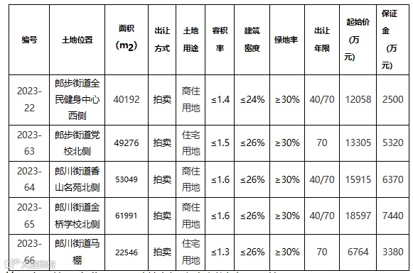 2023-22、64和65号等三宗地块,商业用地配建比例不得超过计容面积的5%。