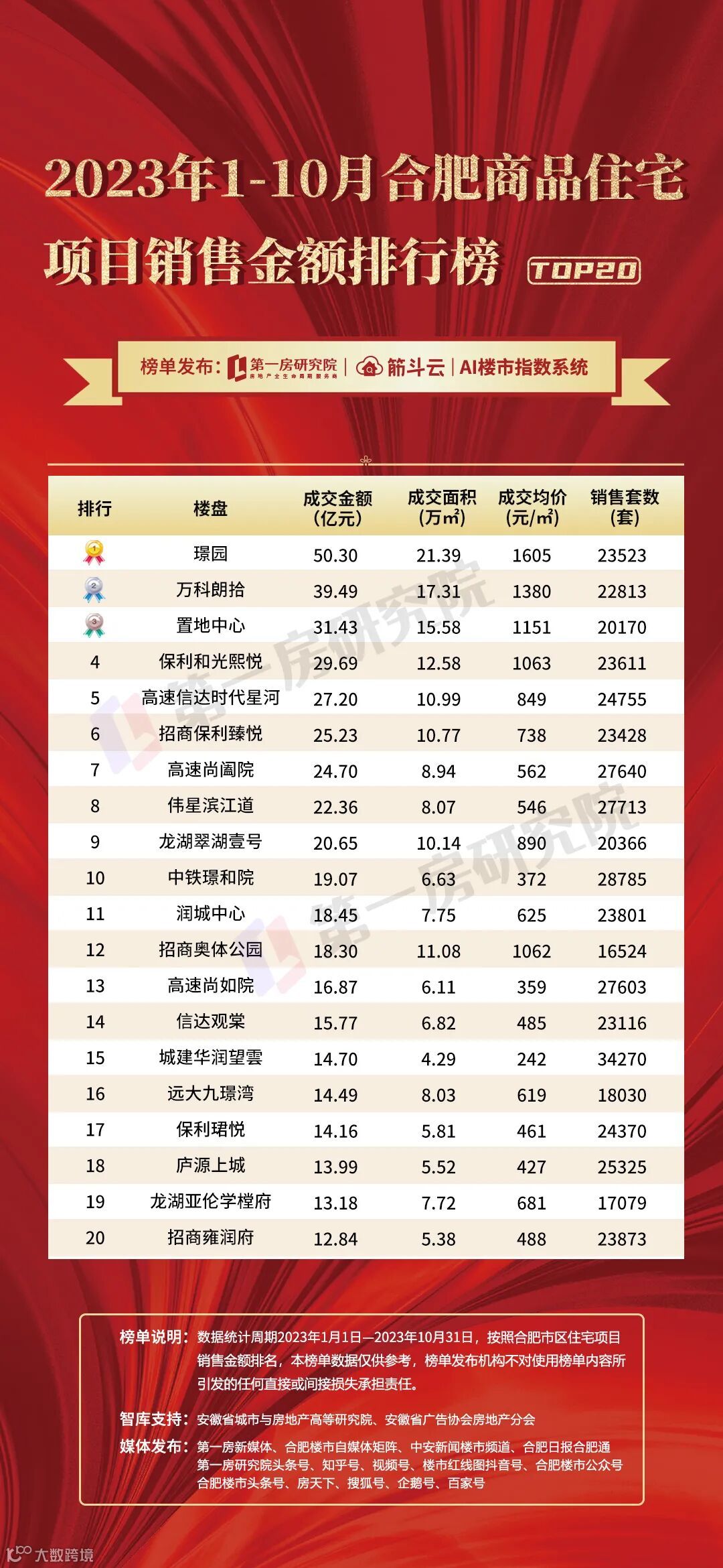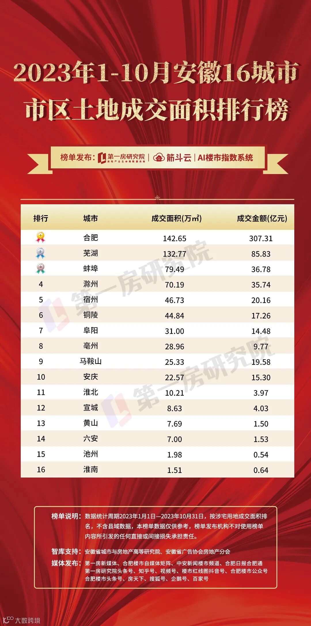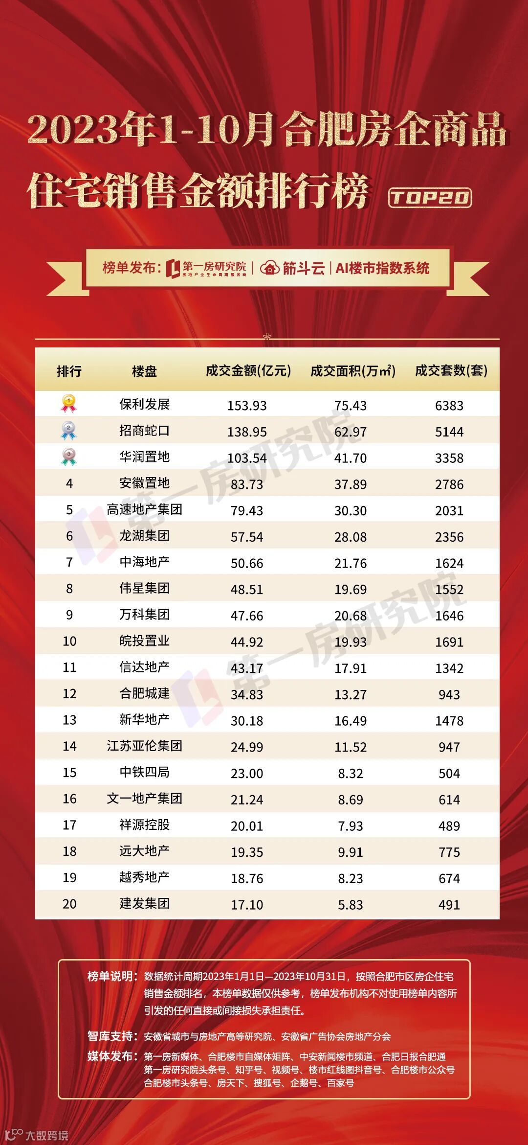 2023年1-10月合肥楼市及安徽土地榜单发布,保利稳居榜首!