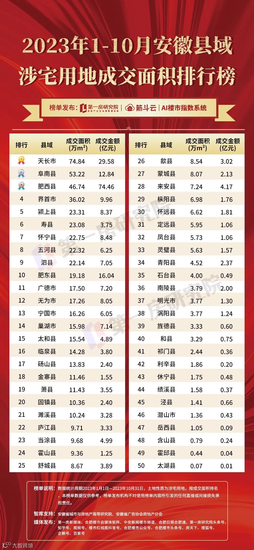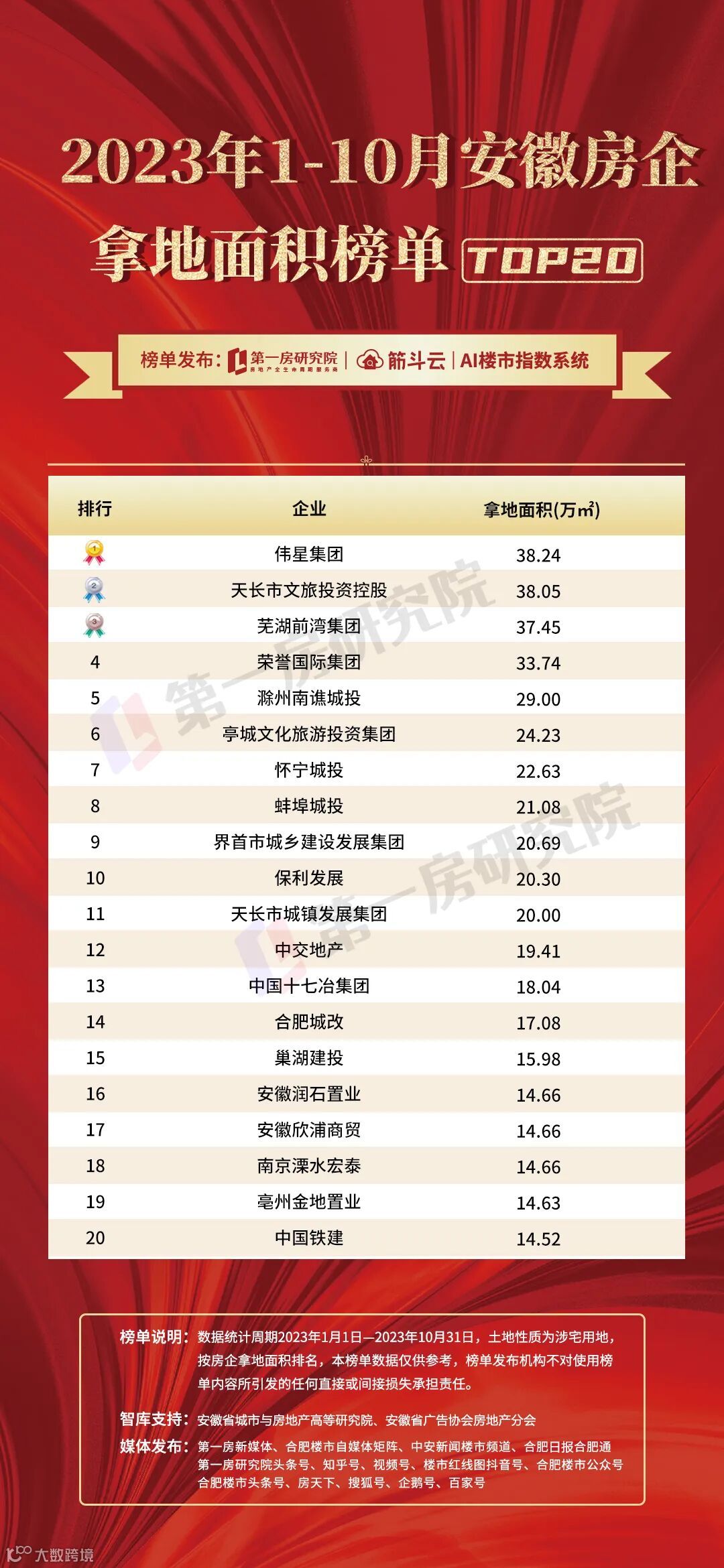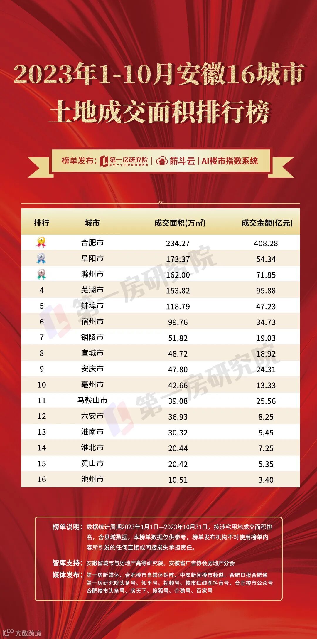 2023年1-10月合肥楼市及安徽土地榜单发布,保利稳居榜首!