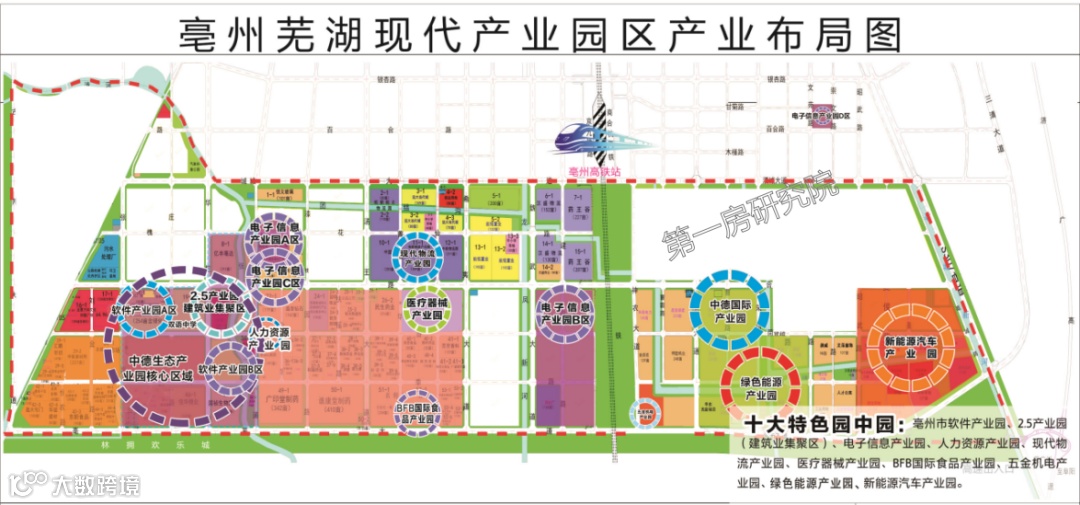 依托“亳”中生机、“芜”中生有、“长”在其中、“深”度融合的产业创新方向。形成了大健康、新材料、新能源汽车及零部件和2.5产业即“3+1”主导产业。园区以“产业链招商、集群式发展、模块化布局”为招商发展理念,精心打造亳州市软件产业园、2.5产业园(建筑业集聚区)、电子信息产业园、人力资源产业园、现代物流产业园、医疗器械产业园、BFB国际食品产业园、五金机电产业园、绿色能源产业园、新能源汽车产业园十大特色“园中园”,有力推动了产业创新和布局优化,“园中园”已经成为亳芜园区发展的重要特色。