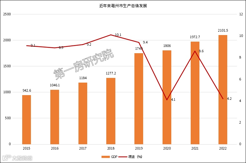 2022年亳州实现地区生产总值(GDP)2224.6亿元,在安徽16个城市中排名第8位,同比增长4.2%,增速排名第四。