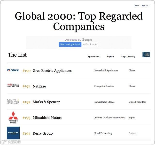 福布斯与Statista合作,统计出了这份“最受尊重公司”名单。