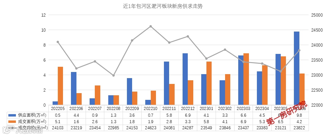 近两年淝河板块不仅土地市场火热,新房市场也较为火热,尤其今年取消限购,市场销售增长明显。近一年淝河板块的成交量波动攀升,成交均价达到23822元/㎡。