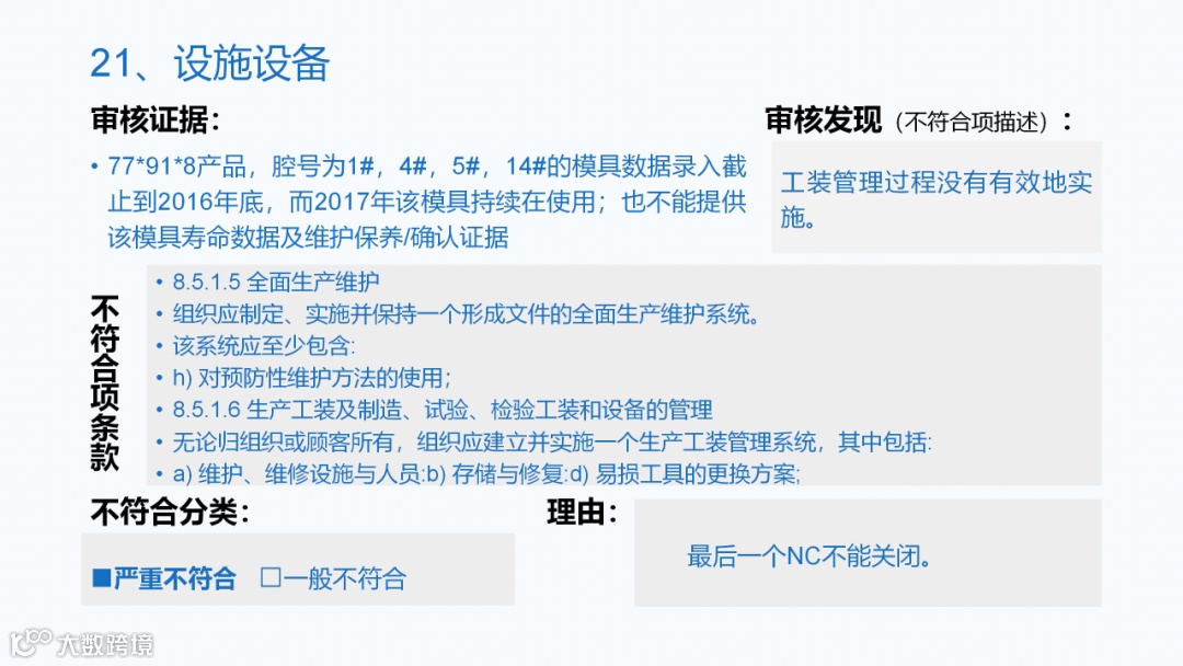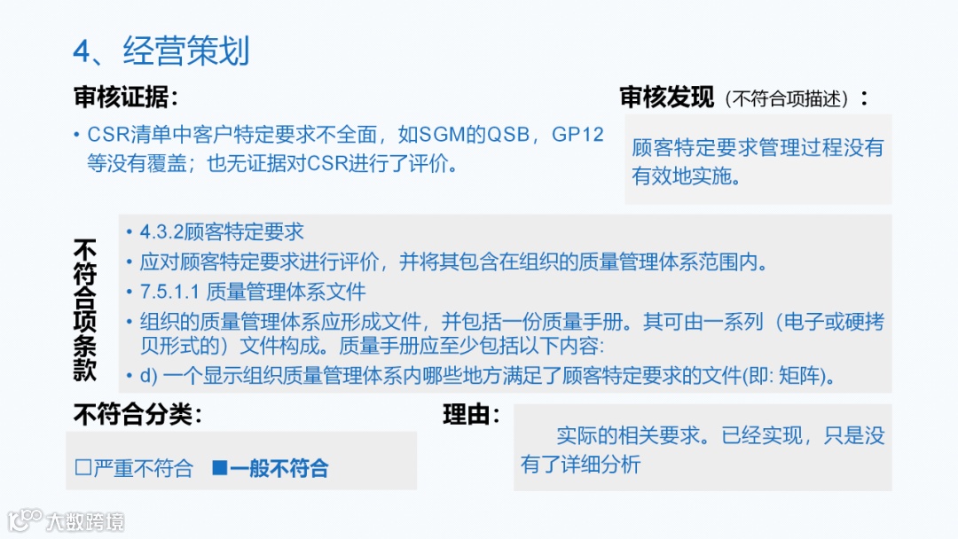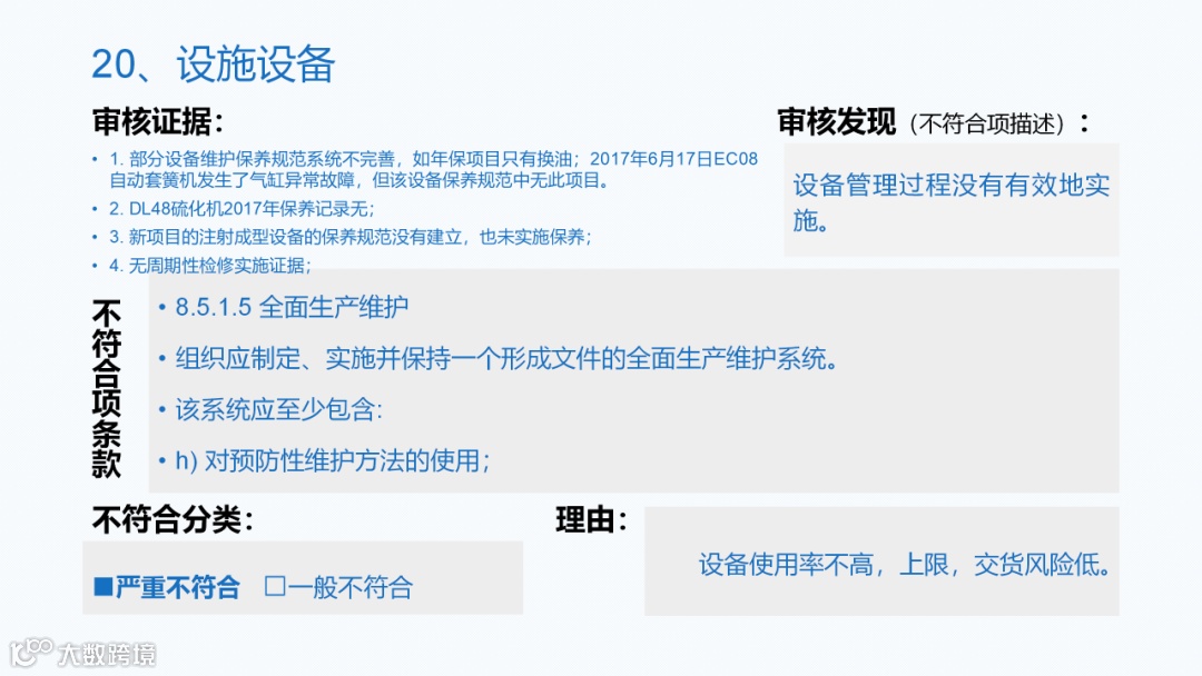 会议中讨论了在很多企业在应对审核时,出现很多不符合的情况。小编整理了一些常见的不符合项的案例,分享给大家,各个企业可以参考下面案例,做针对性的整改。
