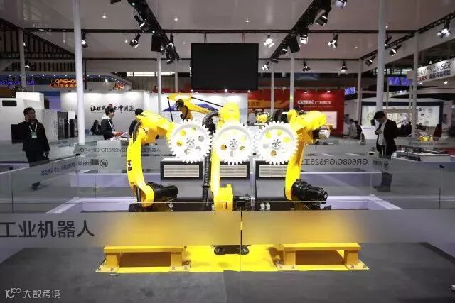 “协同运转齿轮”,则由2台GR608C、1台GR625工业机器人和3套齿轮组成,机器人之间协同合作进行齿轮随机啮合传动,调皮地展示了机器人控制系统多机联动的稳定性及高定位精度。