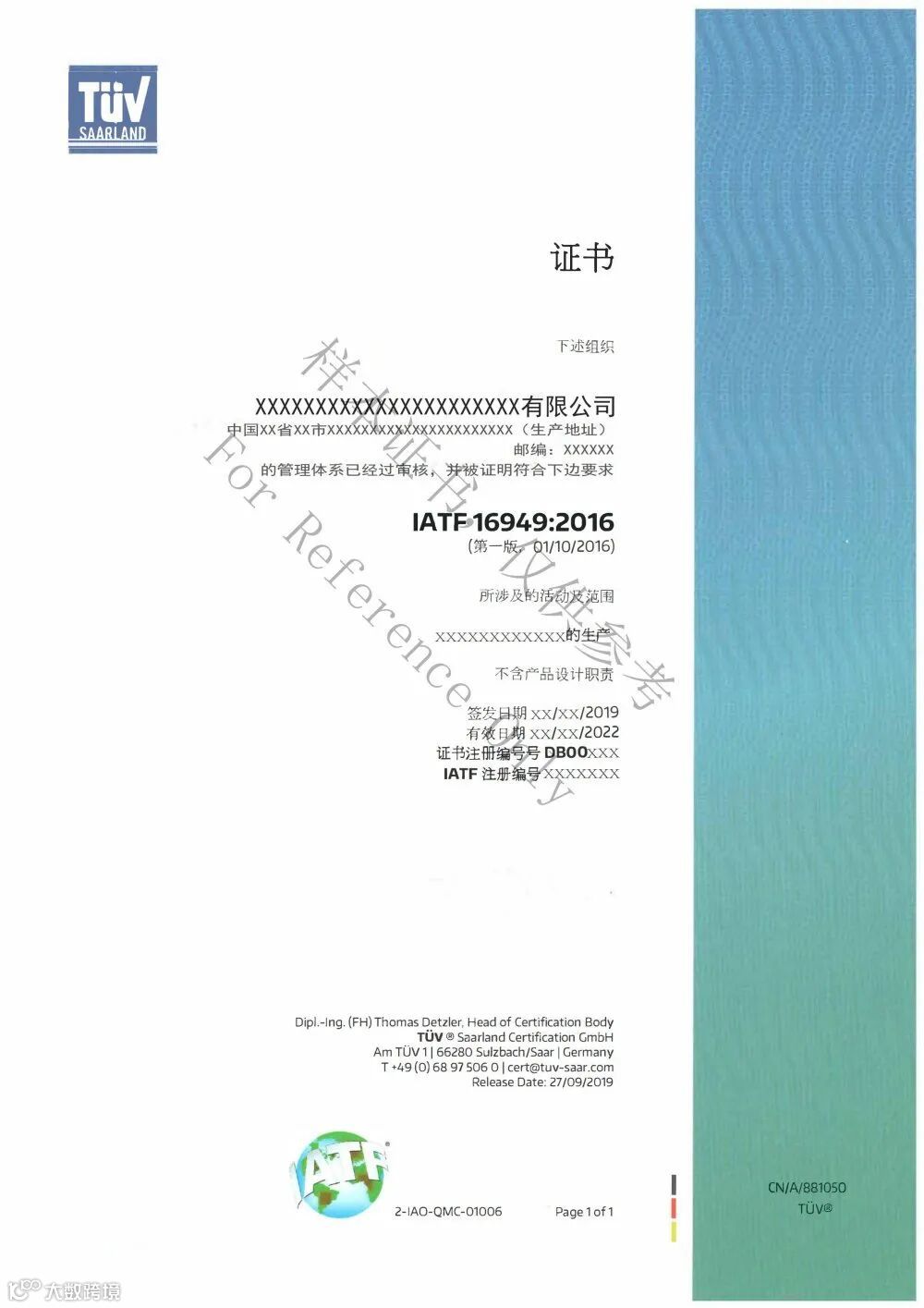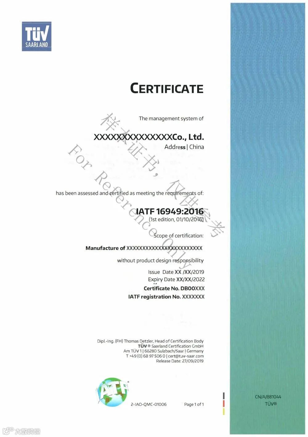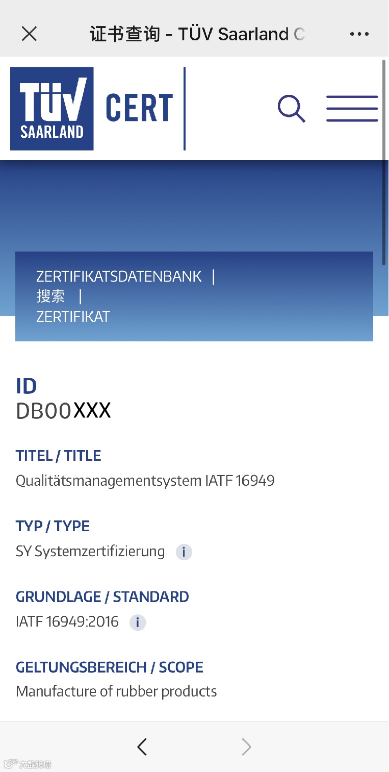 (证书编号/公司名称/IATF编号)